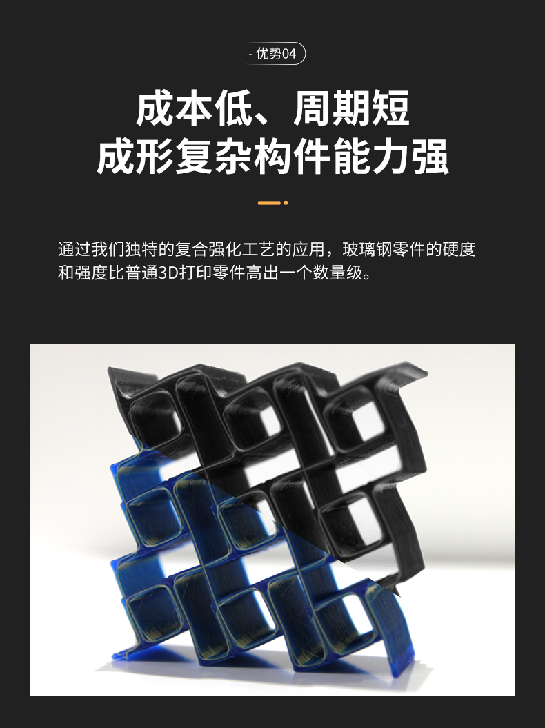 以連續(xù)碳纖維增強熱塑性聚合物基高性能復合材料零件直接3D打印為目標,采用連續(xù)纖與然塑任聚合物為原材料,利用復合浸漬-炫融沉積的3D打印工藝實現(xiàn)復合材料制備與雜結復合材料零件成形的一體化制造。與現(xiàn)有主要的復材制造技術,如熱壓罐成型技不。傳送模塑(RTM)成型技術、纏繞成型技術、自動鋪放技術相比,復合材料3D打印工藝的主要優(yōu)勢在于成本低、周期短,能實現(xiàn)復雜結構復合材料構件的快速制造。 High performance continuous fiber reinforced composites can be directly fabricated through 3D printing technology. Different continuous fibers and thermoplastic polymers are used as raw materials and simultaneously fed into printing nozzle of 3D printing process realizing the integrated preparation and forming of composites. Compared with conventional processes, such as vacuum forming, filament winding, pultrusion, bladder-assisted molding, compression process, the developed novel 3D printing process not only have a lower cost and a shorter production cycle but also can fabricate more complex components.
