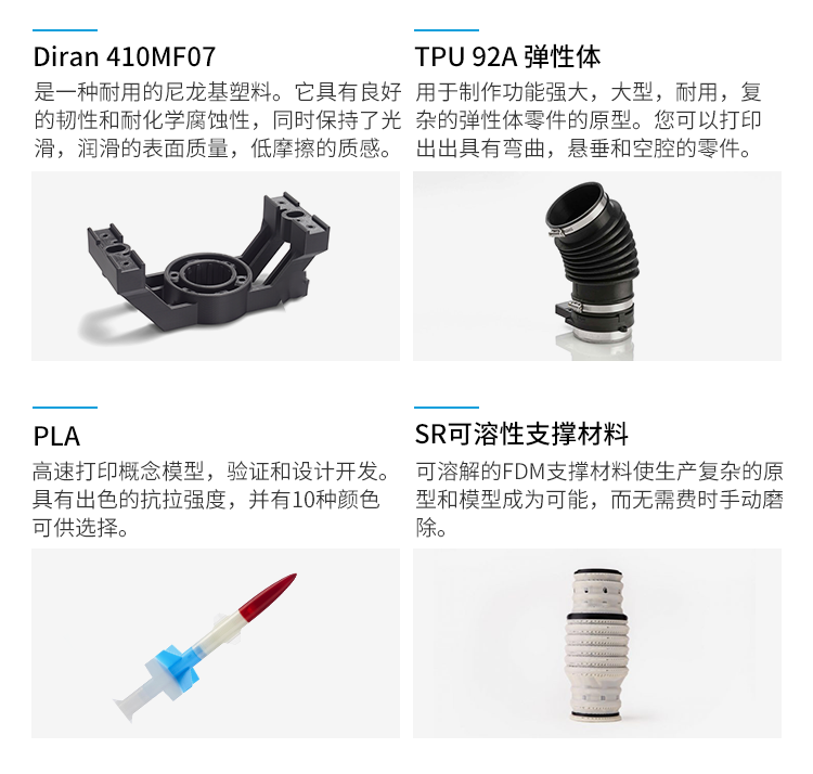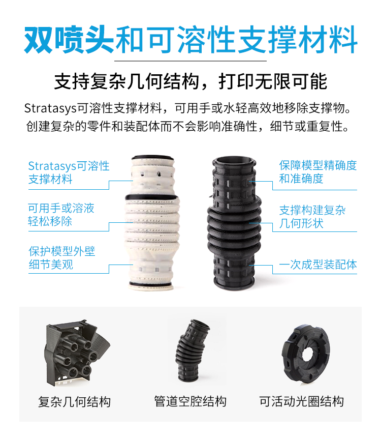 從經(jīng)濟(jì)實(shí)惠的F120TM到多功能的F370,F(xiàn)123系列打印機(jī)帶來無與倫比的選擇。它能夠使用更廣泛的材料,包括碳纖維ABS和彈性體”。它還可以借助我們獨(dú)特的水溶性支撐材料制作復(fù)雜的幾何形狀和聯(lián)鎖組件。無論零件有多復(fù)雜,水溶性支撐材料都可以溶解,只留下光潔表面,而無需手動(dòng)去除。