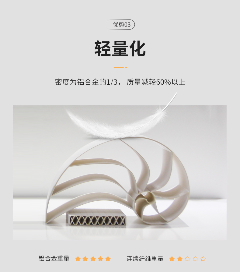 高強度、高剛度:連續碳纖維3D打印技術可以制造出具有高強度、高剛度的零部件,可以滿足航空航天、汽車、醫療器械等領域對高強度、高剛度的需求。