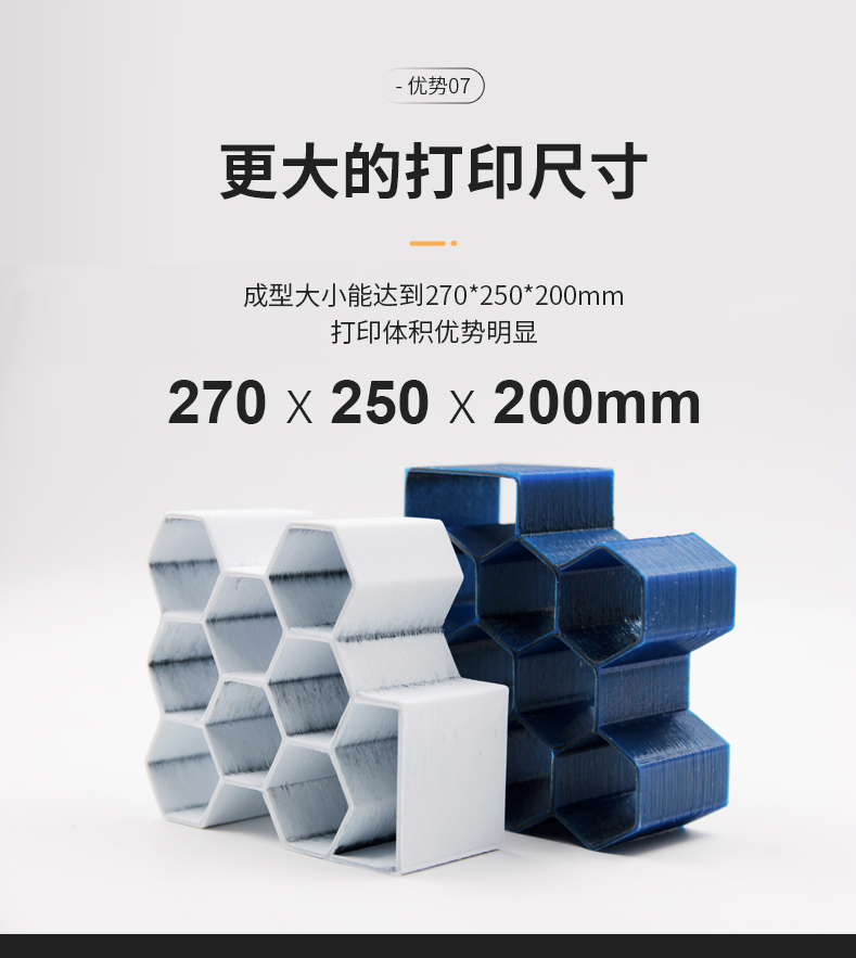Combot 200碳纖維3D打印機,具有雙材料打印系統,兼顧高強度與輕量化,構建能力強,支持個性化定制,利用連續碳纖維與PLA材料等高性能材料性能構建出高強度復合材料零件,連續打印混合材料。