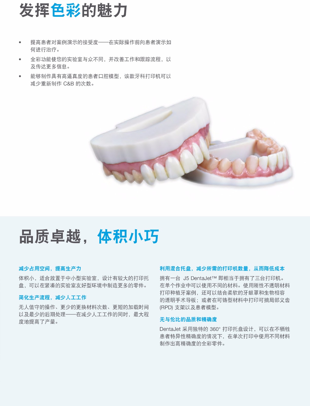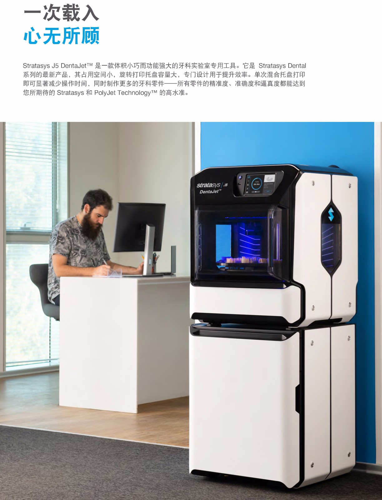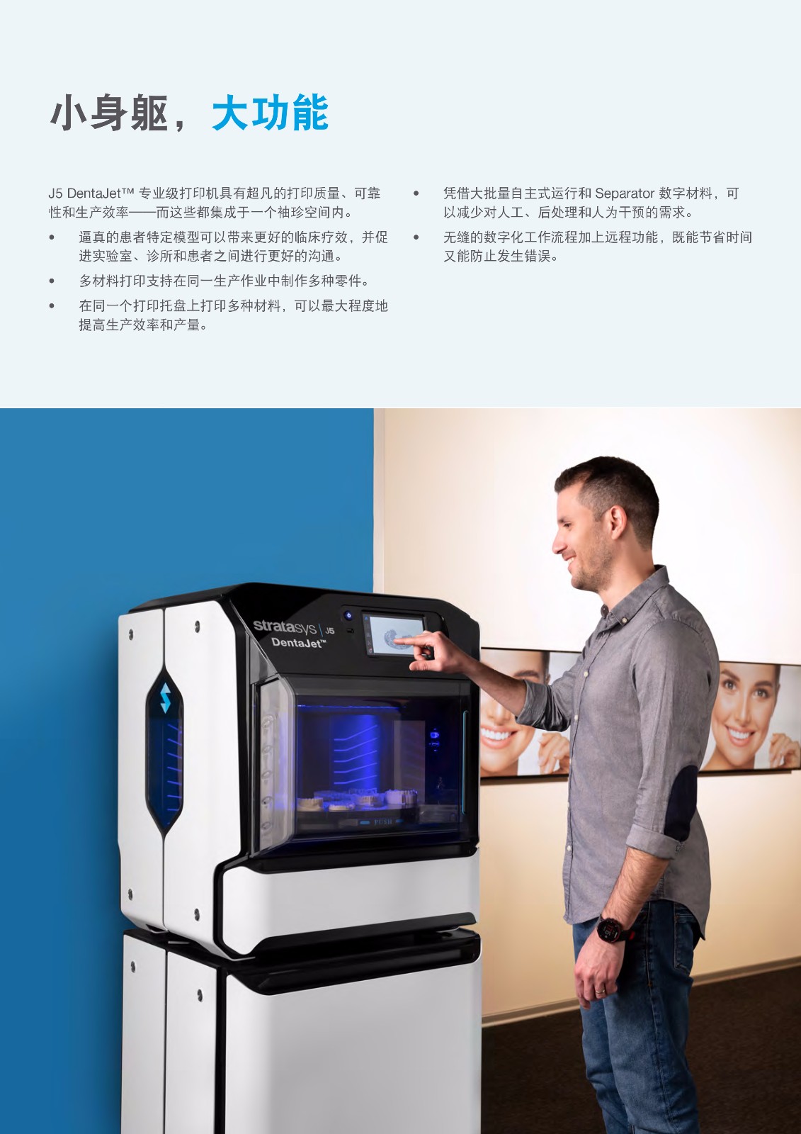 Stratasys J5 DentaJet? 是一款體積小巧而功能強(qiáng)大的牙科實(shí)驗(yàn)室專用工具。它是 Stratasys Dental 系列的最新產(chǎn)品,其占用空間小,旋轉(zhuǎn)打印托盤容量大,專門設(shè)計(jì)用于提升效率。單次混合托盤打印即可顯著減少操作時(shí)間,同時(shí)制作更多的牙科零件——所有零件的精準(zhǔn)度、準(zhǔn)確度和逼真度都能達(dá)到您所期待的 Stratasys 和 PolyJet Technology? 的高水準(zhǔn)。
